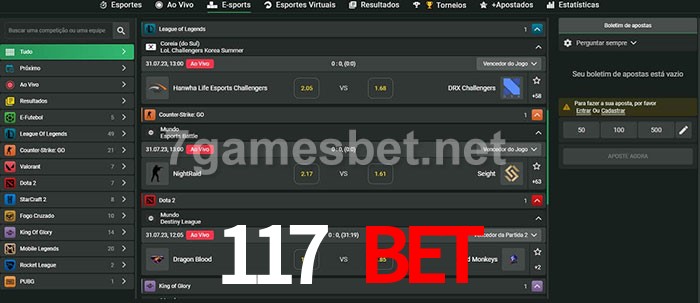 A aposta 117 Bet oferece aos jogadores a experiência mais conveniente de apostas em eSports!